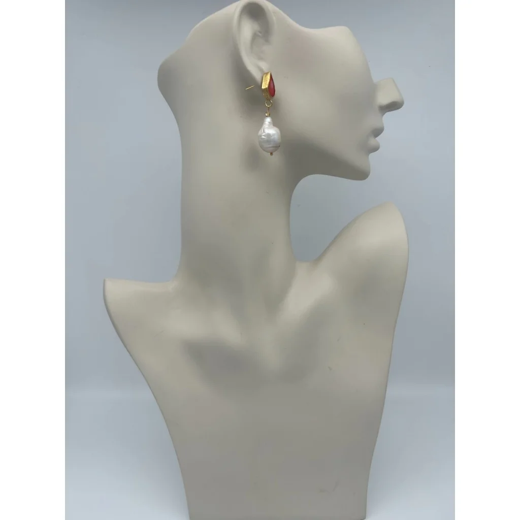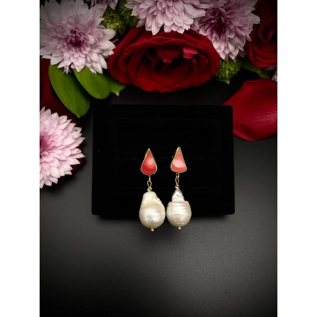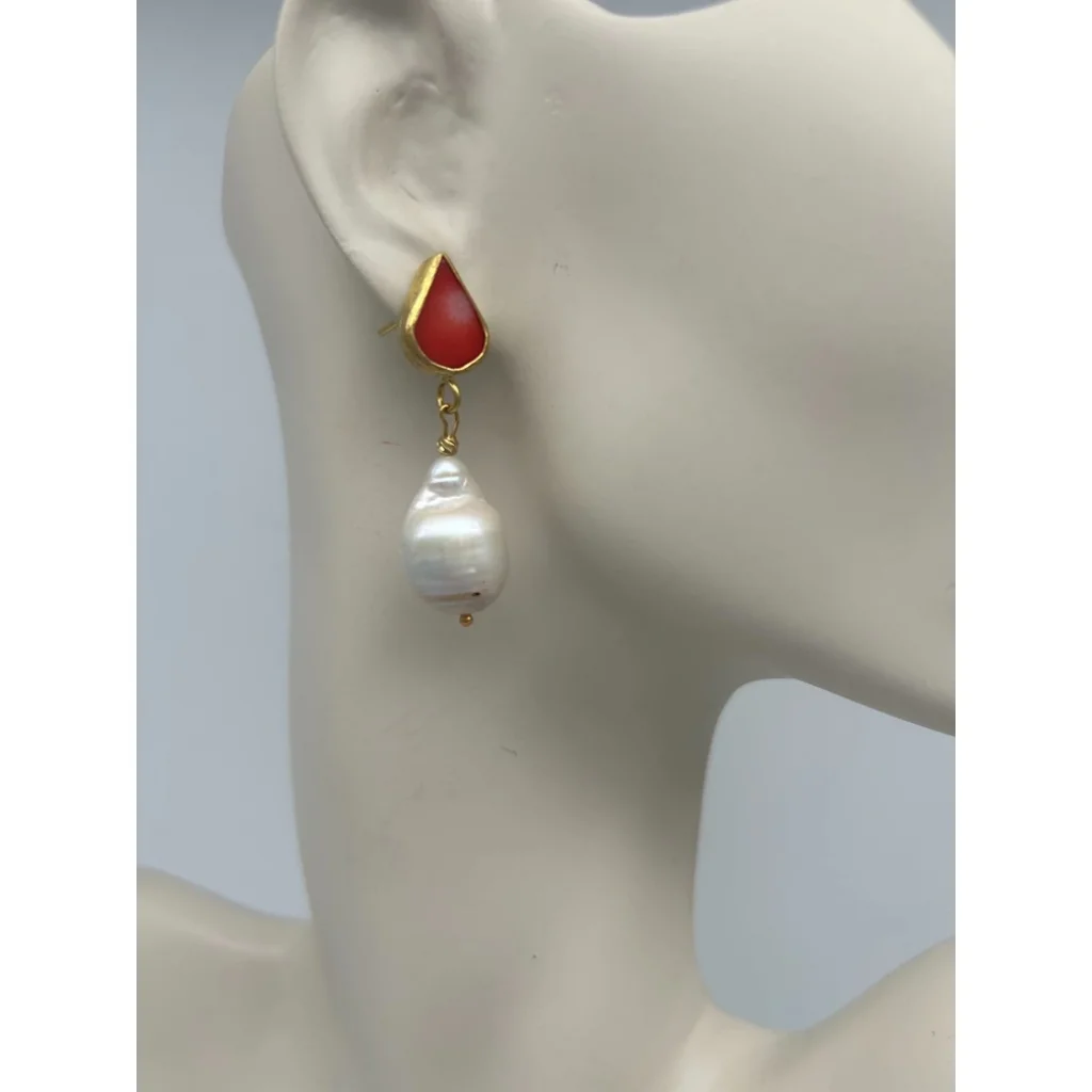 Barok İnci Mercan Altın Kaplama Küpe