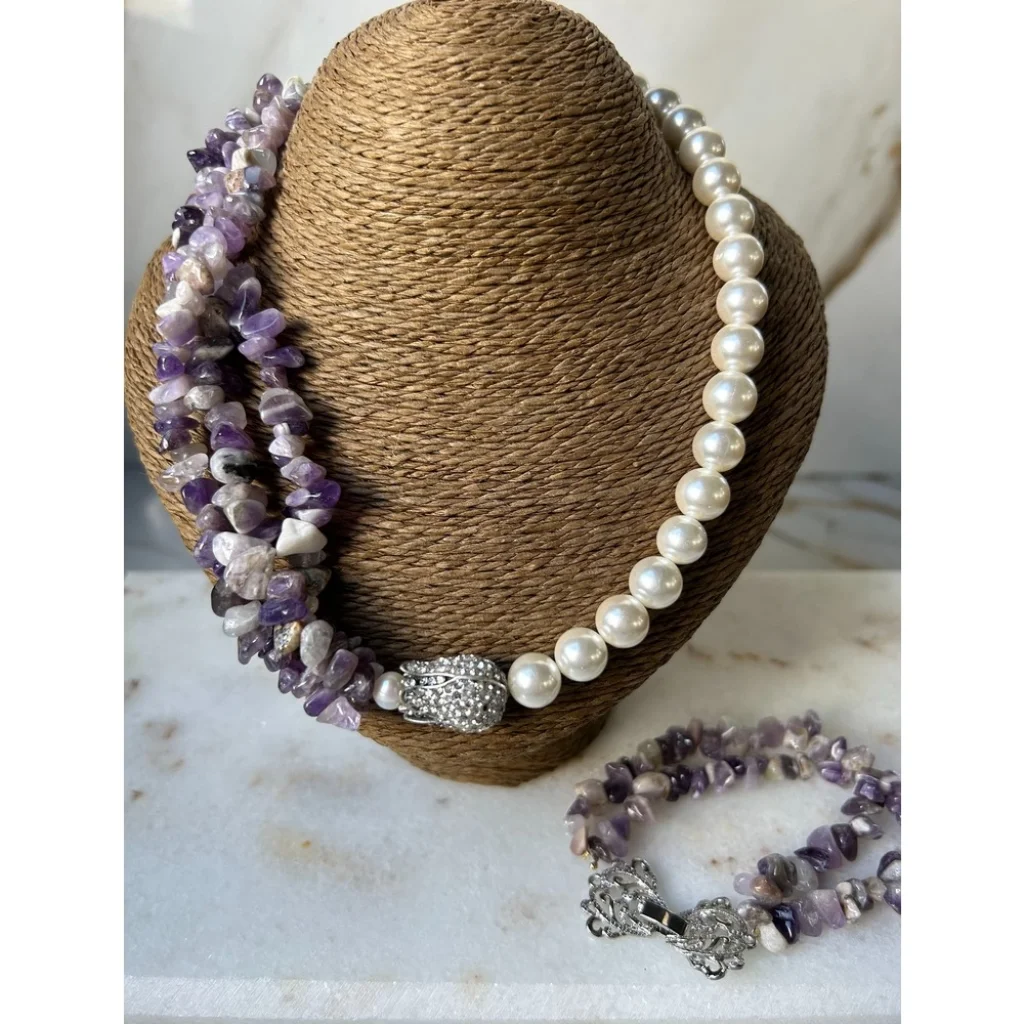 Kırık Ametist İnci Kolye Bileklik Set